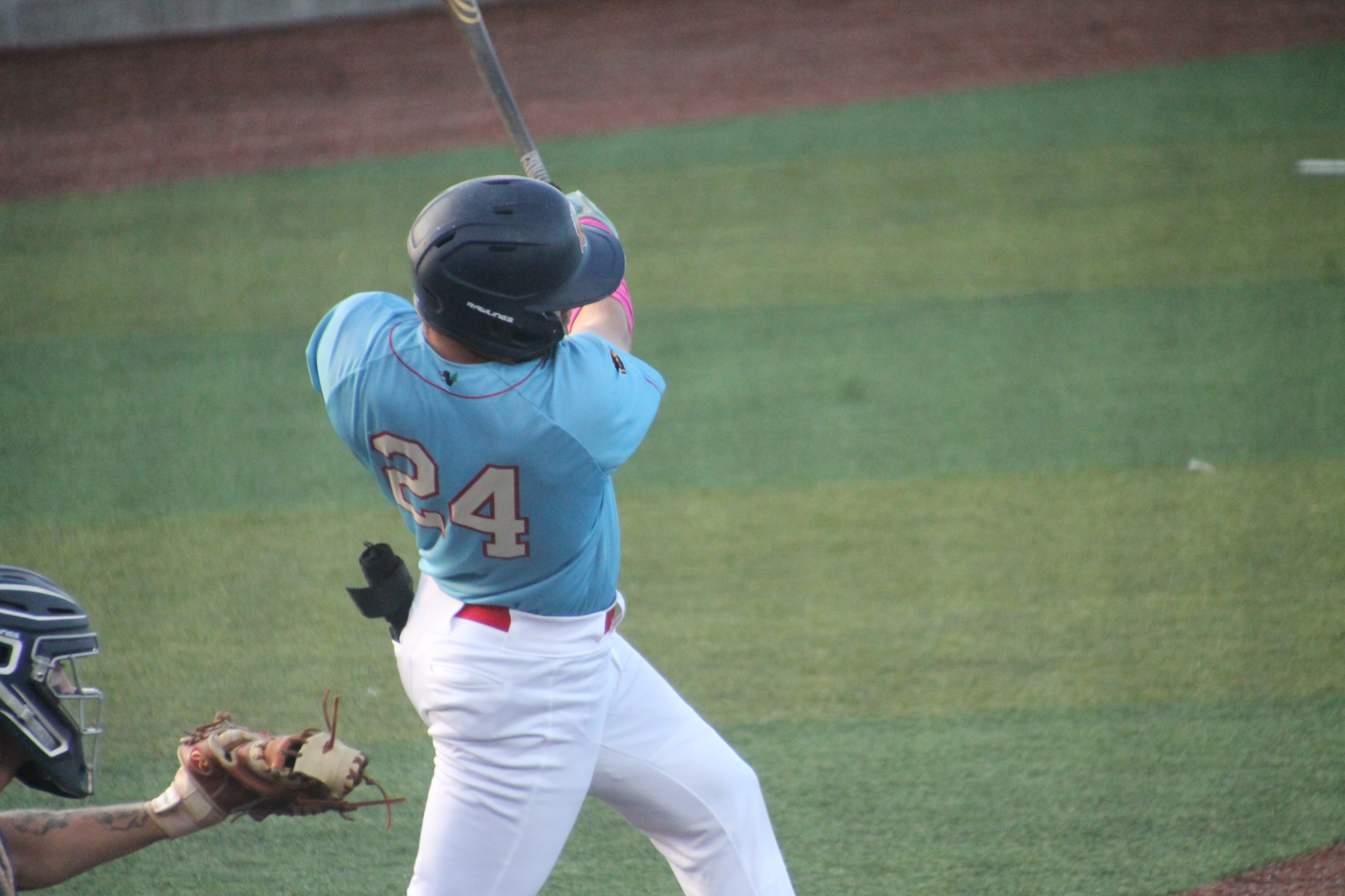 Spoiler alert, I did not stay for the entire game, but did see Nate get two of his (3-3) singles and score a run which game Kenosha a temporary 2-0 lead.